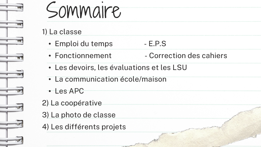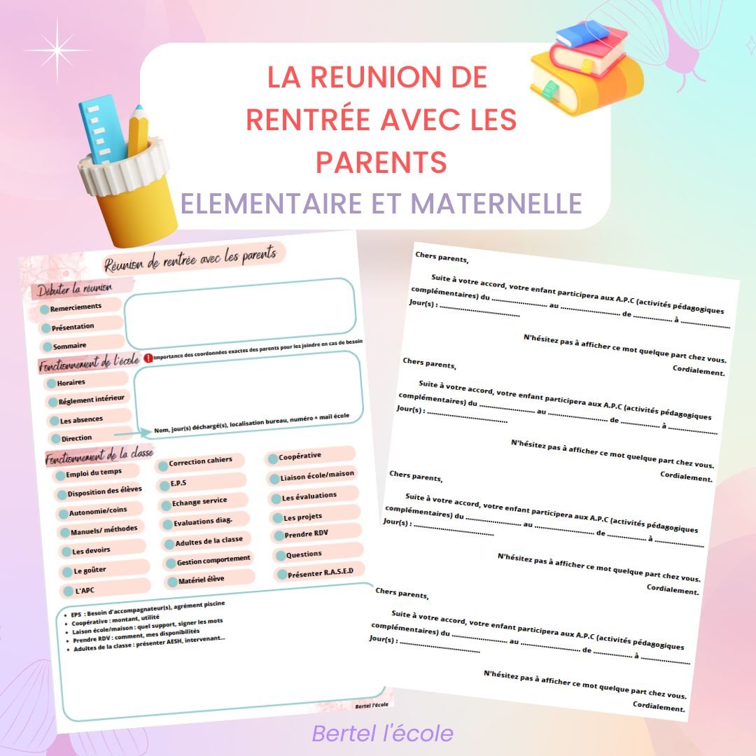 Je vous propose ici une petite liste des points que vous pouvez aborder lors de la réunion de rentrée avec les parents. A vous de choisir l’ordre des points, ce que vous voulez détailler ou non. Il y a une liste pour l’élémentaire et une pour la maternelle.