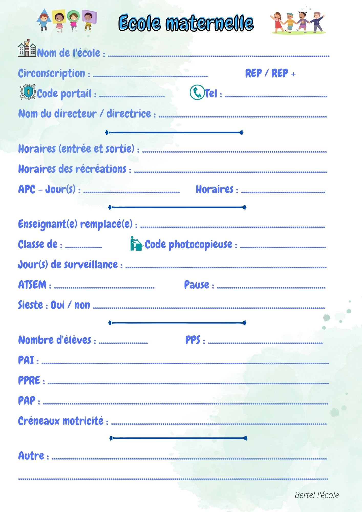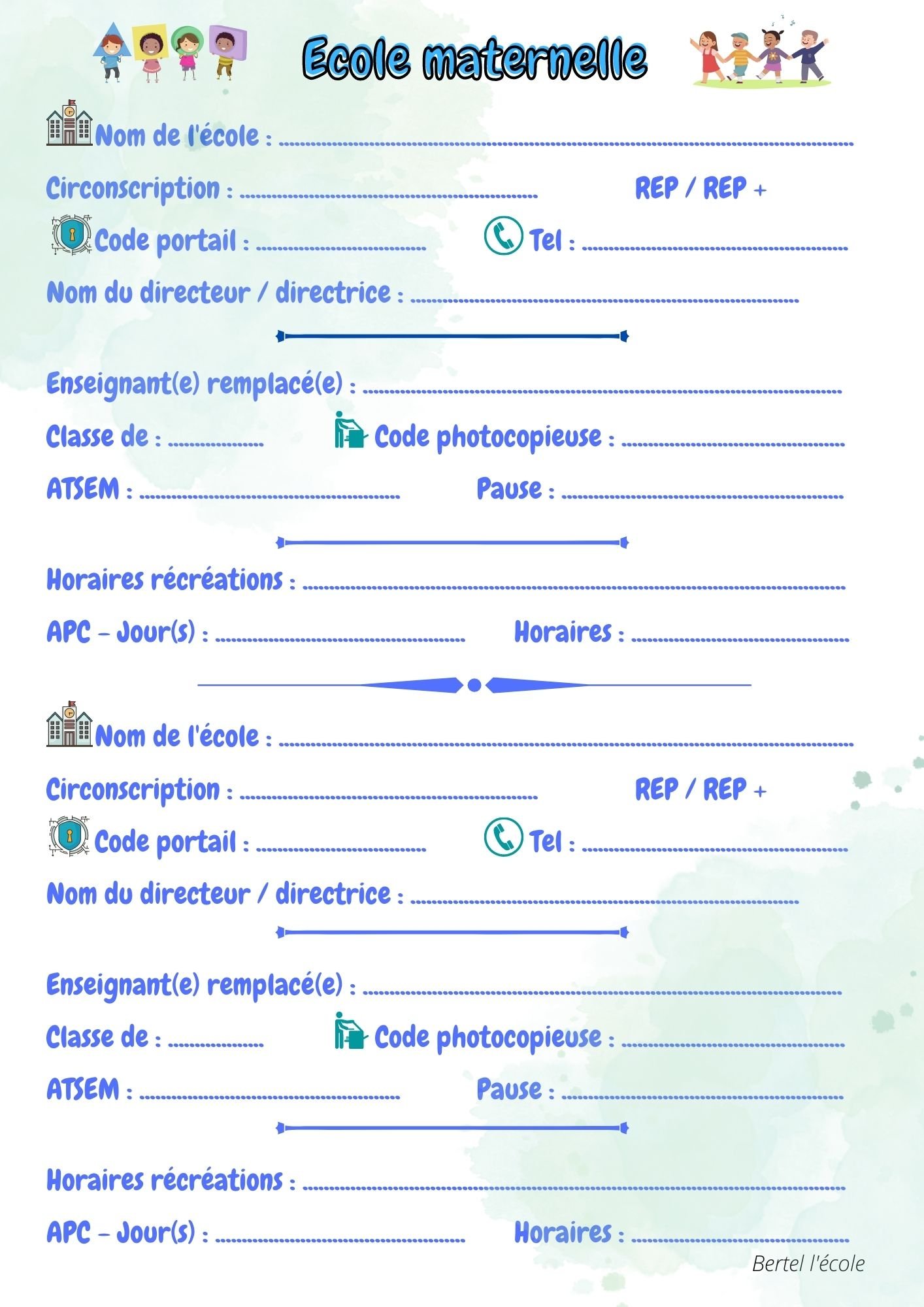 Il y a une fiche pour la maternelle et une pour l’élémentaire
