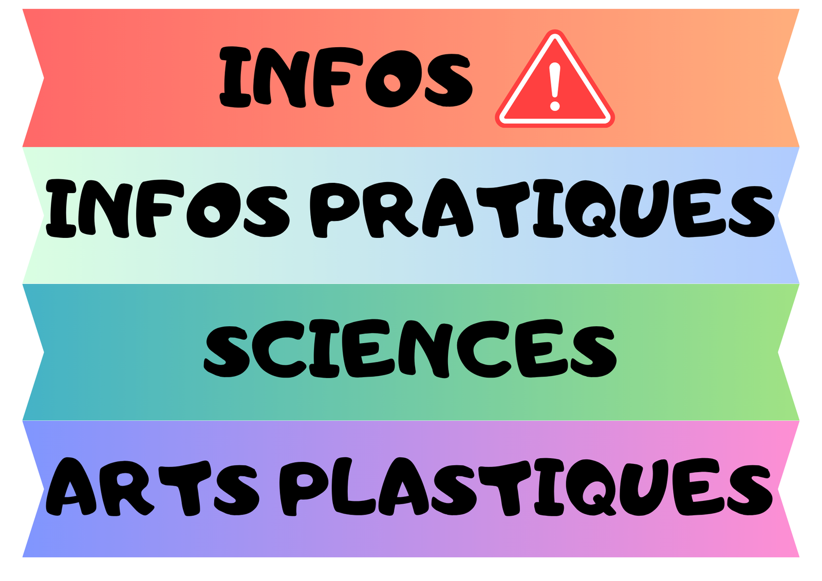 Je vous propose un affichage tout simple mais pratique pour votre classe ! Vous pourrez ainsi bien séparer chaque discipline et vous faire un espace avec les informations importantes et pratiques !